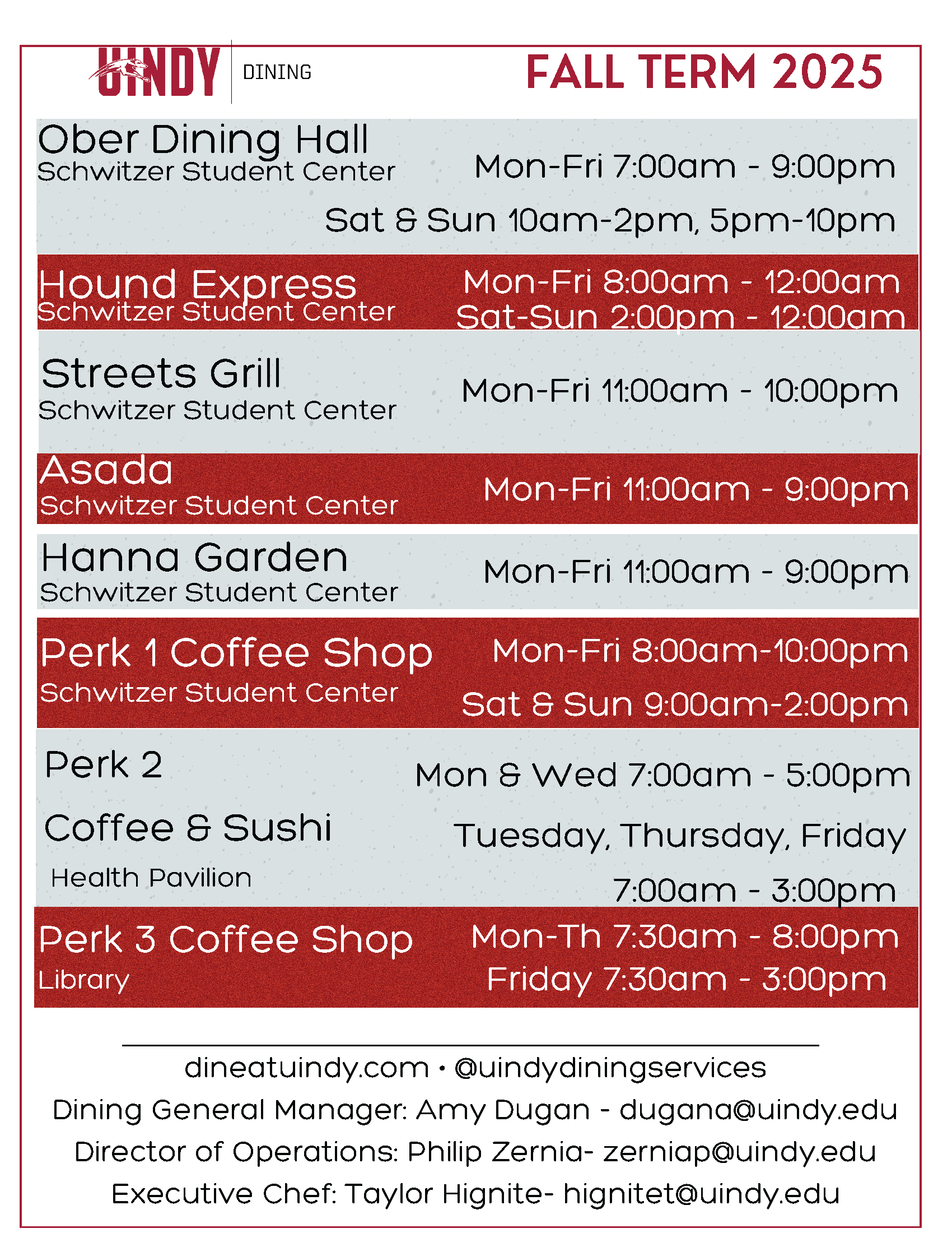 Please note: Both options accept meal plans, Crimson Cash, cash and credit cards.